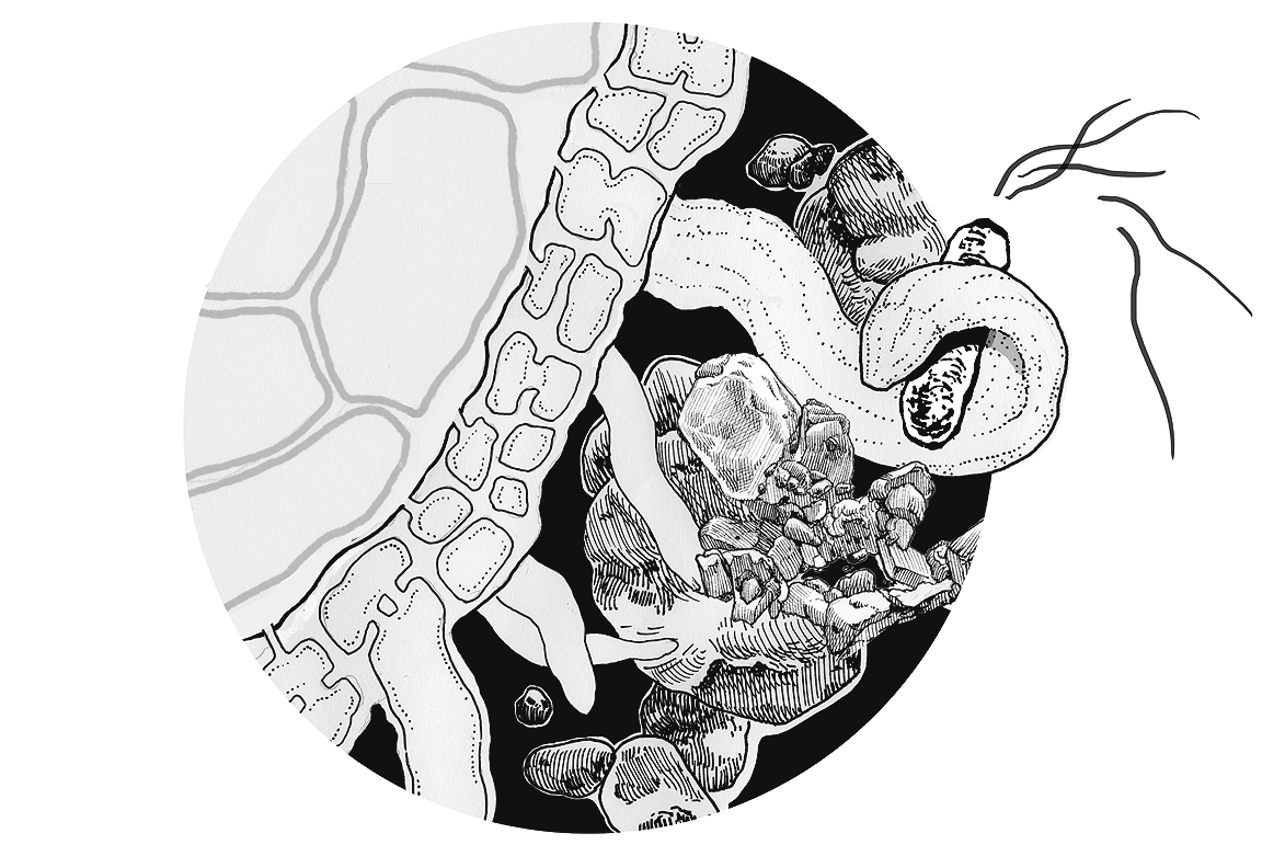 Angela illustrated microscopic phenomena to be incorporated into the exhibit graphics.