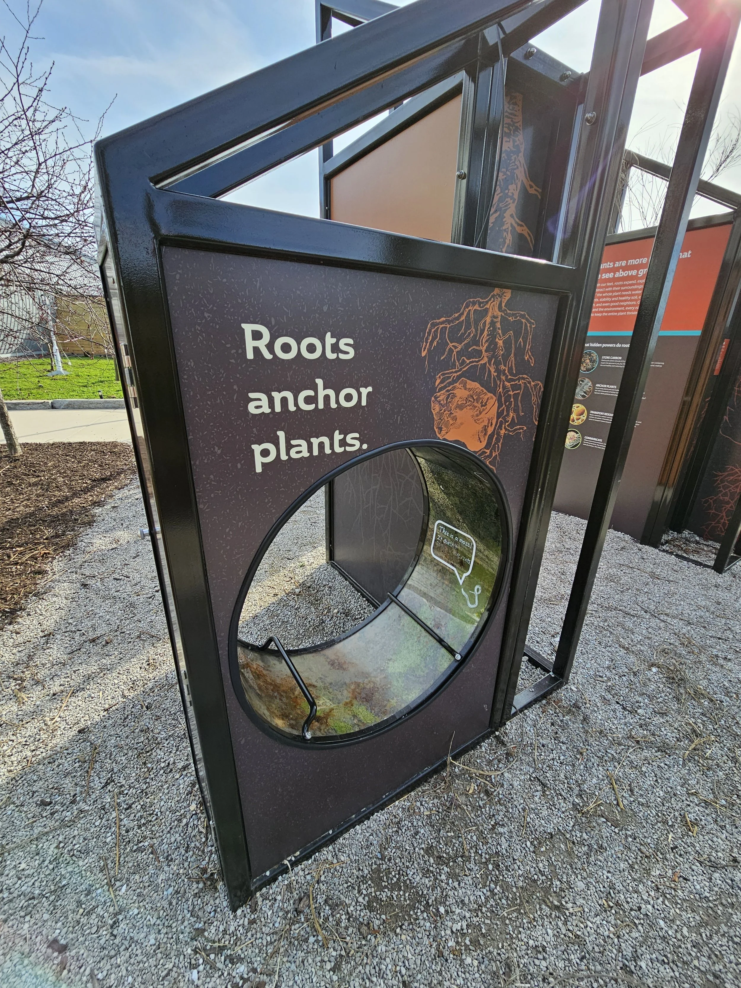 This outdoor exhibit shows how roots’ “hidden powers” help life on Earth thrive. Visitors crawl through tunnels to observe growing roots, see microscopic imagery, and discover cutting edge research in root biology. Angela developed this exhibit alongside many scientists and artists.