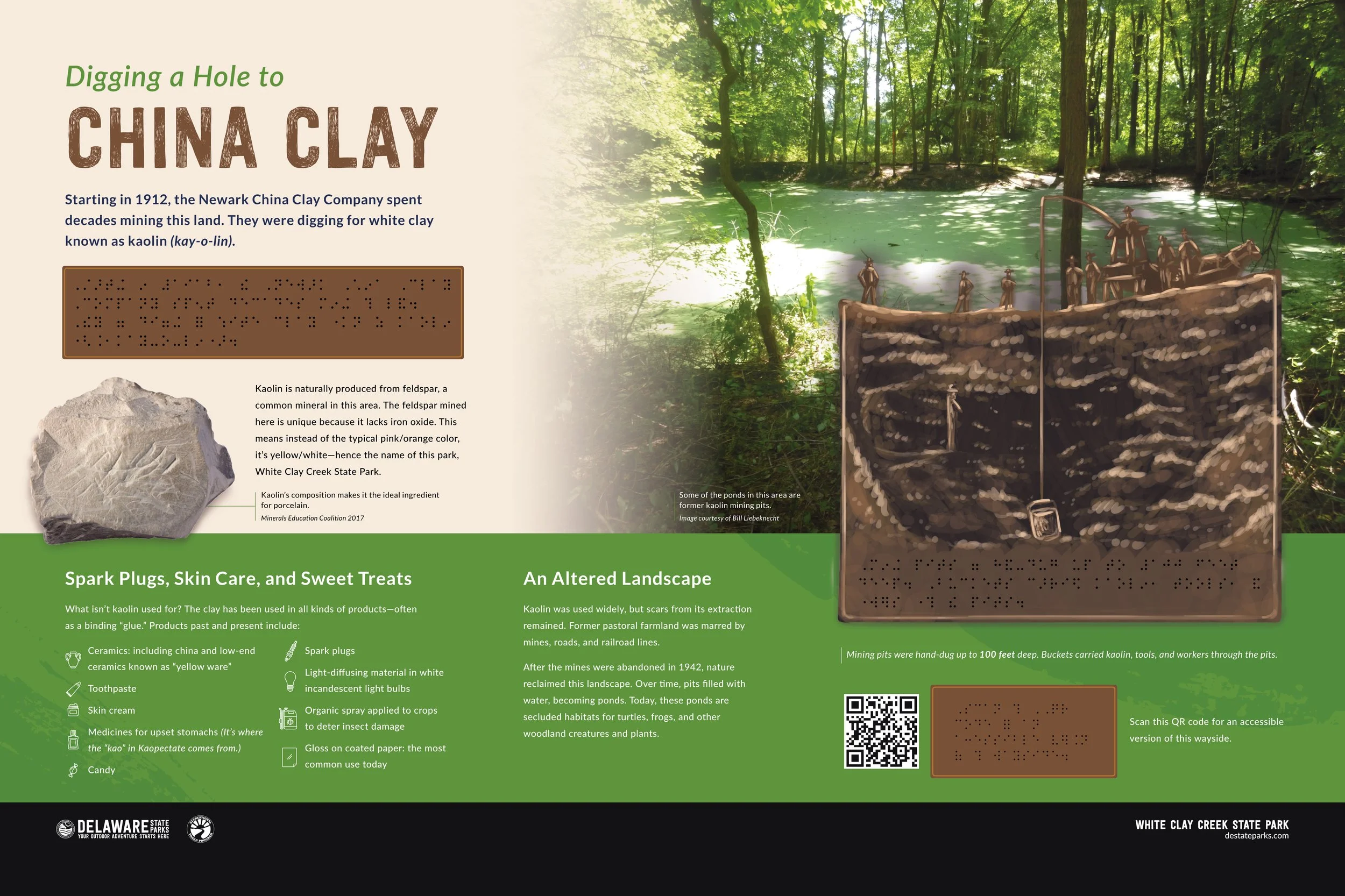 As the Exhibits Coordinator for Delaware State Parks, Laura led the creation of six tactile waysides for two state parks — Holts Landing and White Clay Creek. With tactile letters and images, braille, and raised QR codes to accessible content, these signs share the wonders of their sites in uniquely engaging ways. The projects won a 2025 Interpretive Media Award from the National Association for Interpretation.